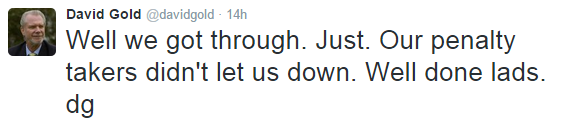 And finally, co-chairman David Gold was delighted with the Hammers advancing. He praised the penalty takers, as all five spot-kicks were buried successfully.